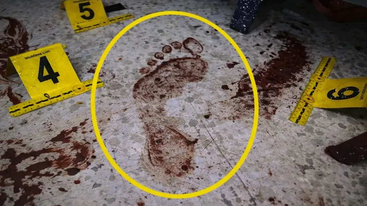 Una huella plantar marcada con sangre permitió a los especialistas de criminalística identificar al principal sospechoso y reconstruir lo ocurrido en el escenario del crimen.